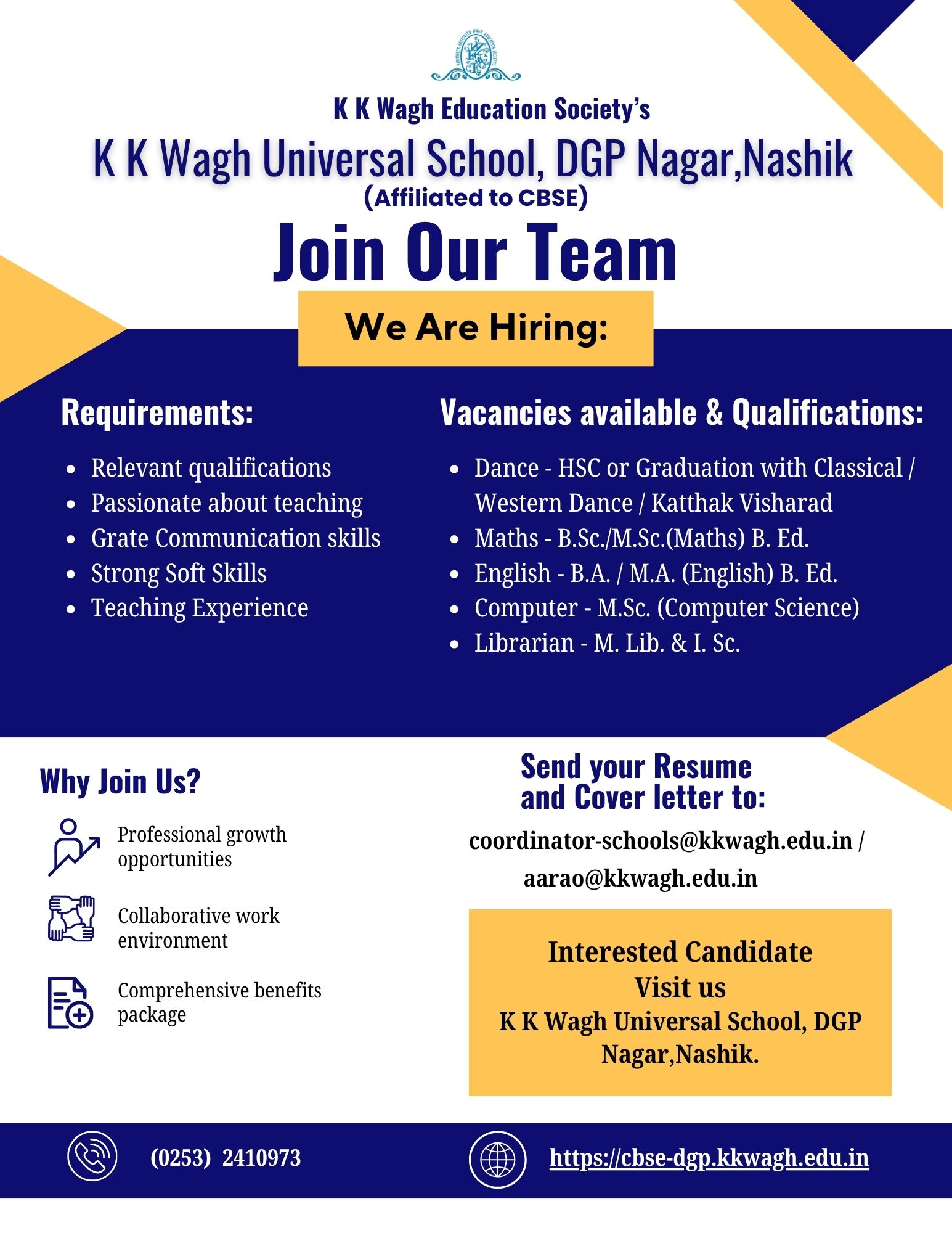 We’re looking for passionate and qualified educators in Dance, Maths, English, Computer & Library Science.